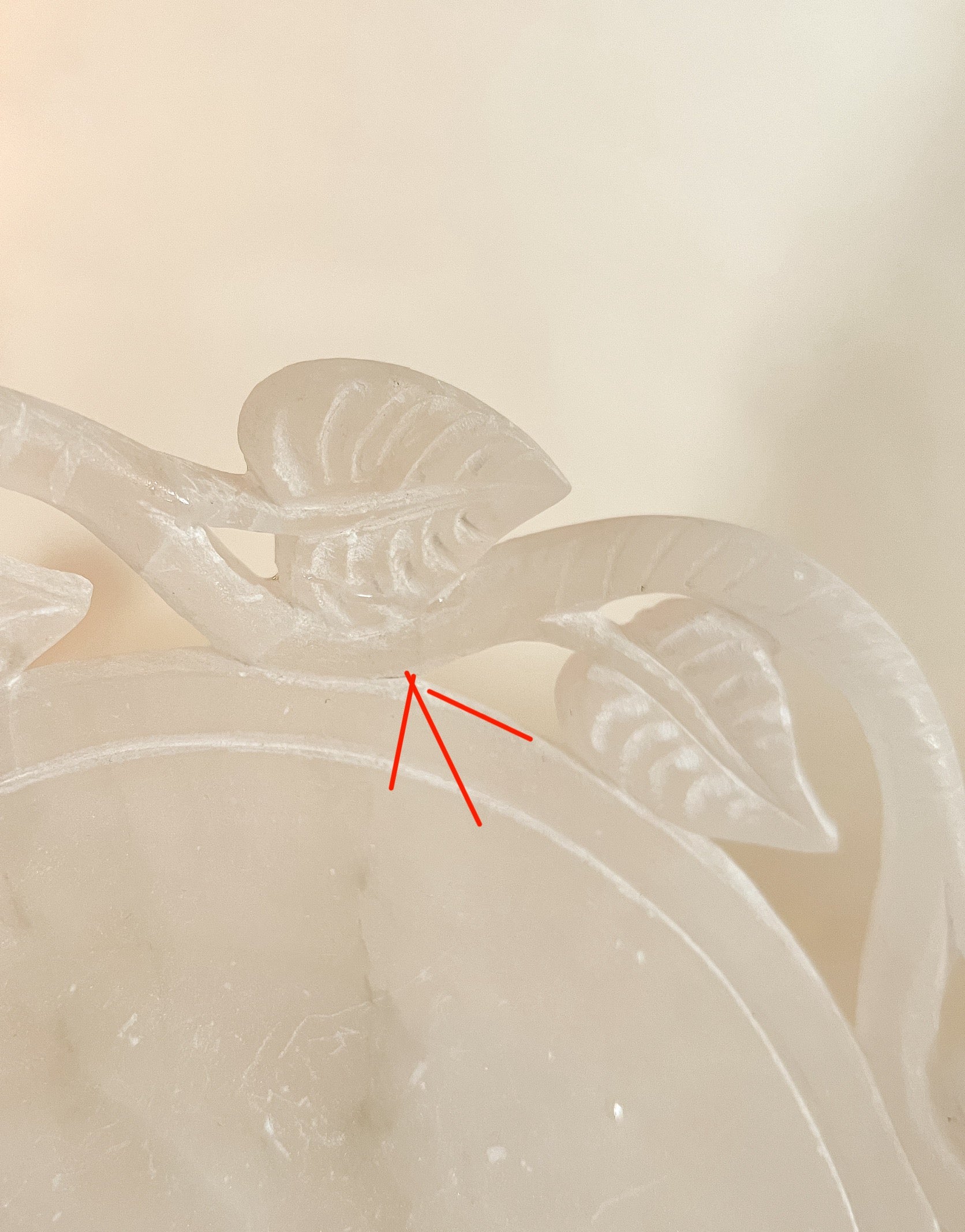 Disclaimer: one of the leaves has been repaired and there is a small amount of visible glue residue. Please see photos for details.