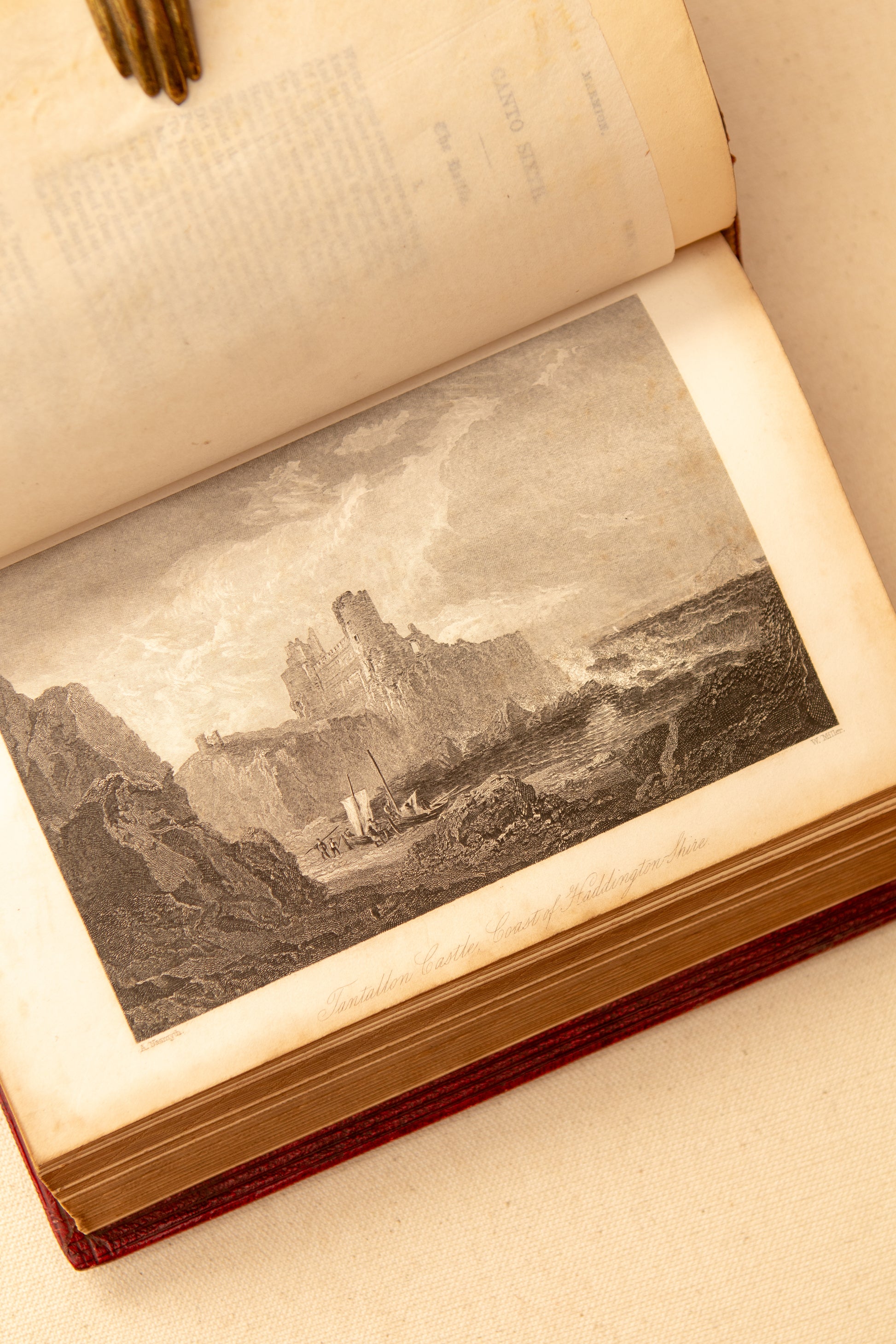 This antique volume of Scott’s Poetical Works features richly tooled leather boards and beautiful gauffered edges, a hallmark of 19th-century bookbinding craftsmanship. The deep red leather and decorative detailing give this piece a striking presence, whether styled on a shelf, desk, or layered into a library vignette. A wonderful example of a well-loved literary classic, carrying both visual character and historical charm.