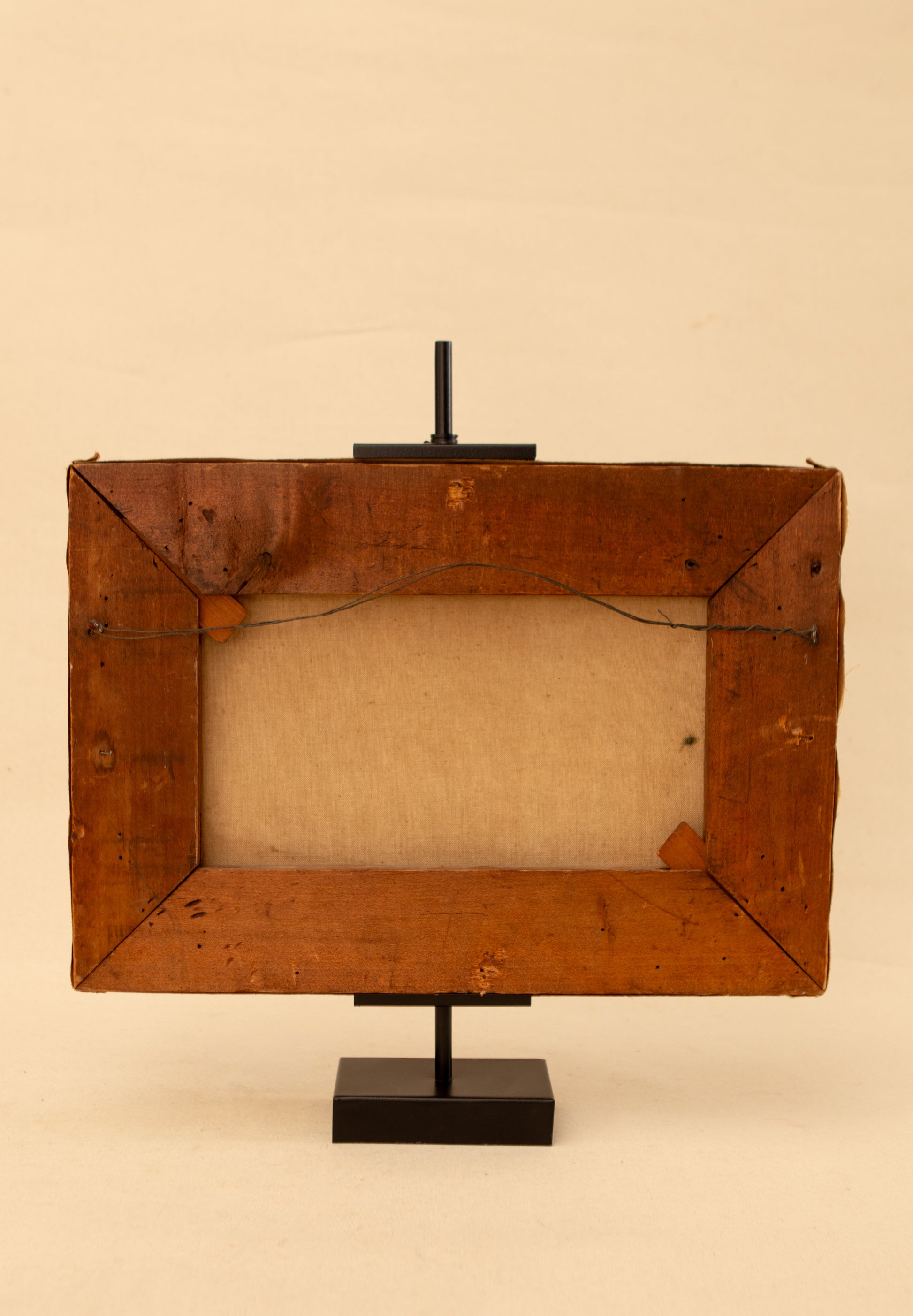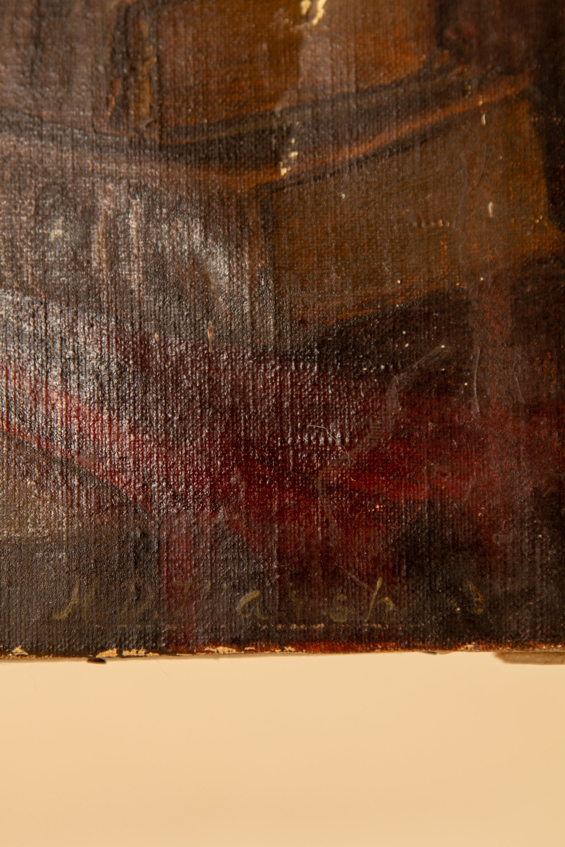 The original canvas shows honest age and character, with visible wear consistent with an antique work. Please review photos closely, as this patina is part of the painting’s charm and history.