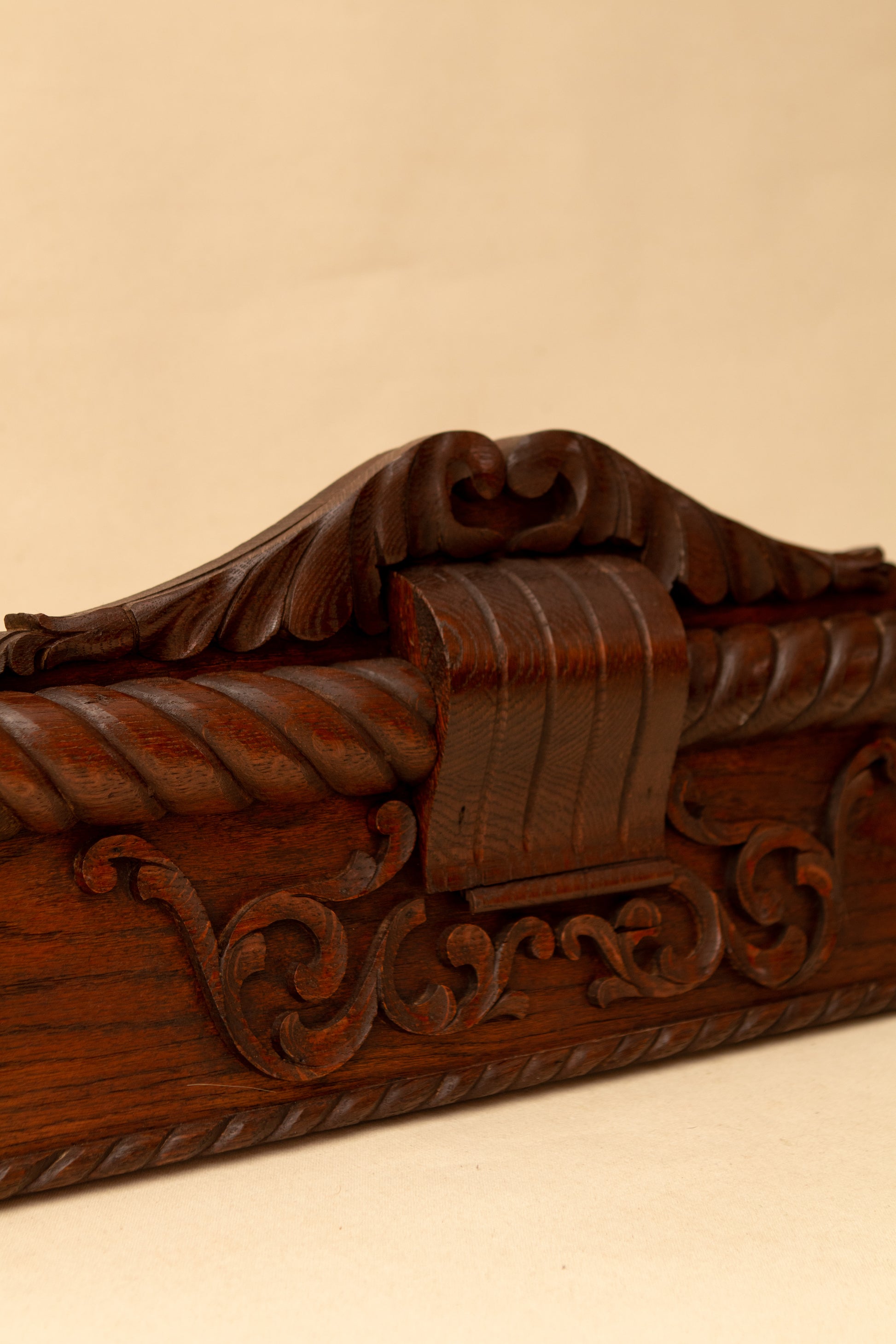 A beautifully carved wooden pediment featuring rich scrollwork, a twisted rope border, and a gently arched crest—perfect for adding a touch of architectural history to your home. Style it above a doorway, lean it on a mantel, or incorporate it into a gallery wall for that collected-over-time, European estate feel.